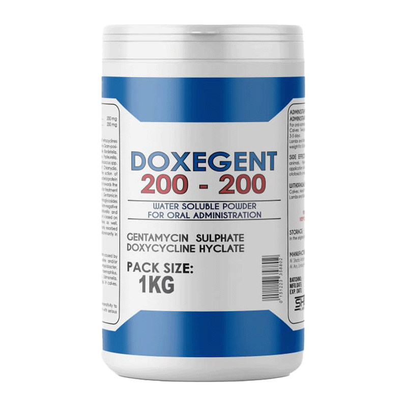 DOXYGENT – 1KG مسحوق مضاد حيوي قابل للذوبان للاستخدام الفموي التركيبة: كل 1 غرام يحتوي على: هيكلات دوكسي سايكلين ……………………..
