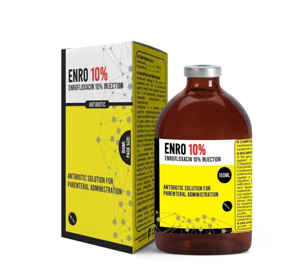 ENRO 10% ENROFLOXACIN 10% INJECTION Broad-spectrum synthetic antibiotic for respiratory and gastrointestinal infections.