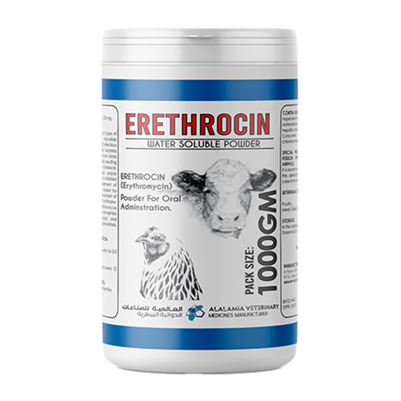 500 mg **Indications:** ERETHROCIN is a water-soluble macrolide antibiotic suitable for all types of drinking water.
