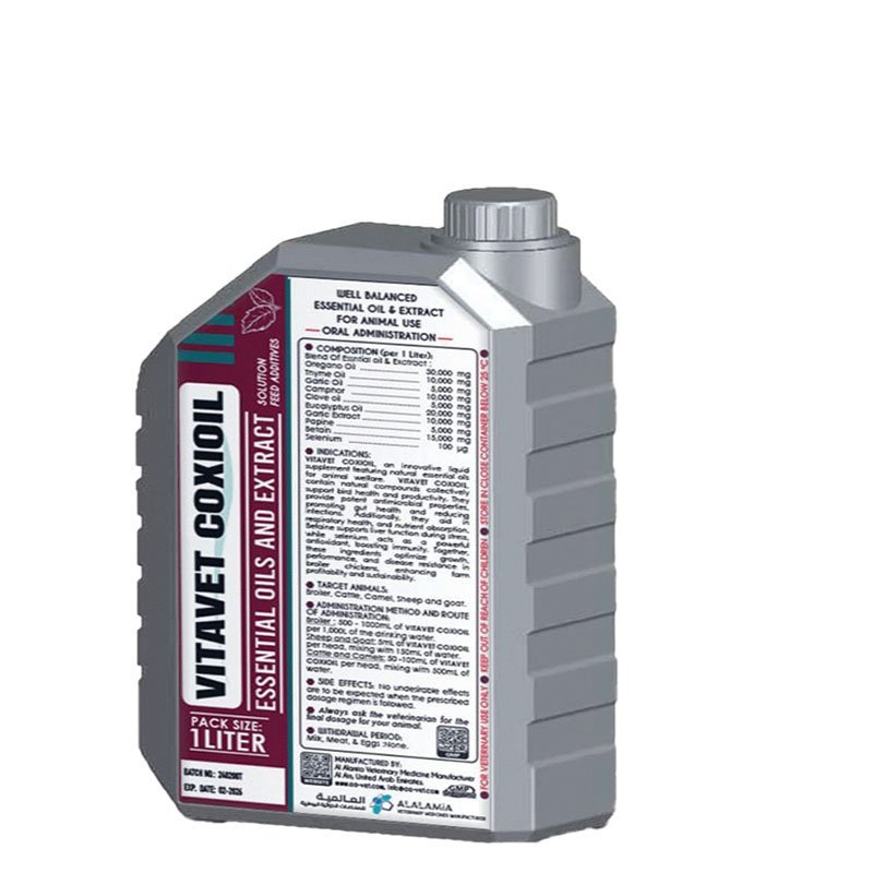 **VITAVET COXIOIL** *Balanced Essential Oils and Extracts for Animal Use* *Oral Administration* **Composition (per 1 liter):** A blend of essential oils and extracts: – Oregano Oil ……………………..