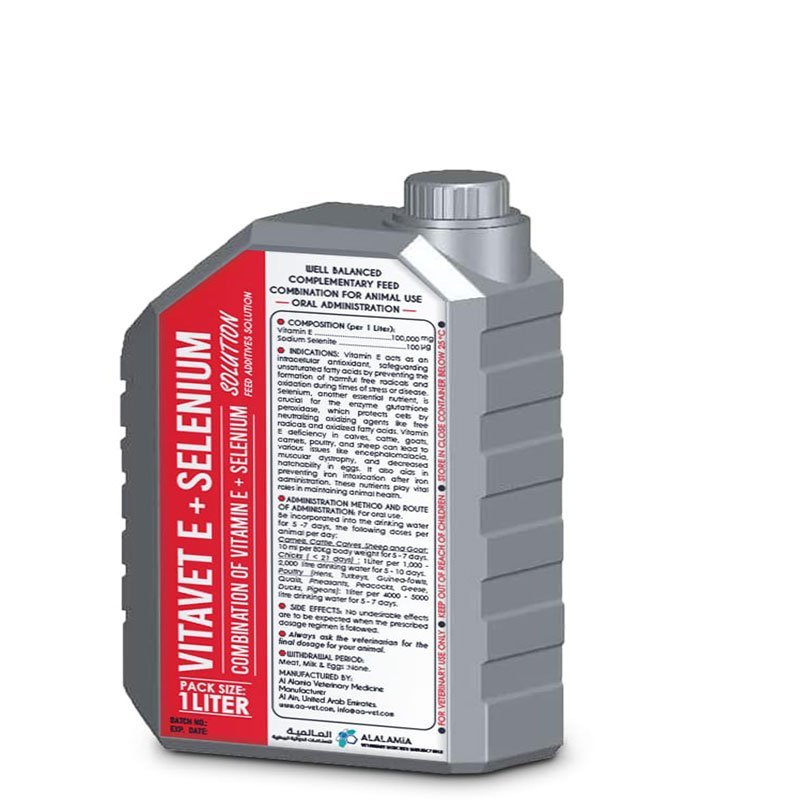 VITAVET E + SELENIUM مزيج من فيتامين E + سيلينيوم الصنـاعـات الدوائية البيطرية العالمية Alalamia للاستخدام البيطري فقط يحفظ بعيدًا عن متناول الأطفال يُخزن في حاوية محكمة الإغلاق تحت 25 درجة مئوية تركيب (لكل 1 لتر): فيتامين E ………………………….