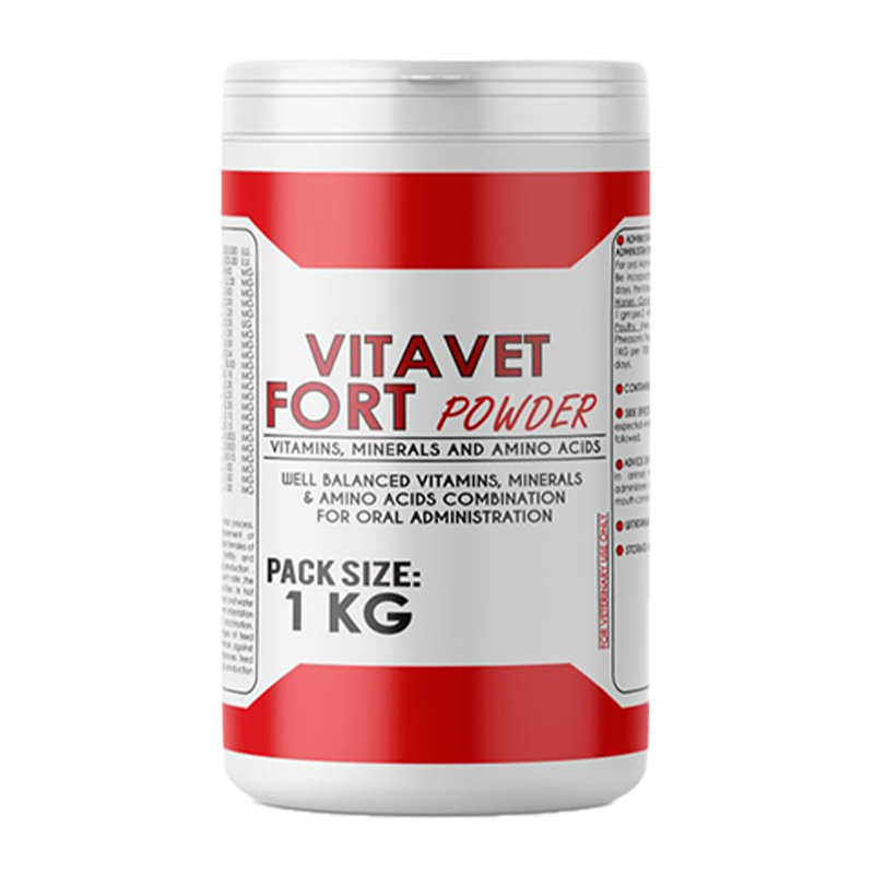 دلالات الاستخدام: يستخدم VITAVET FORT للحفاظ على العمليات الحيوية الطبيعية، والتطور والإنتاج.