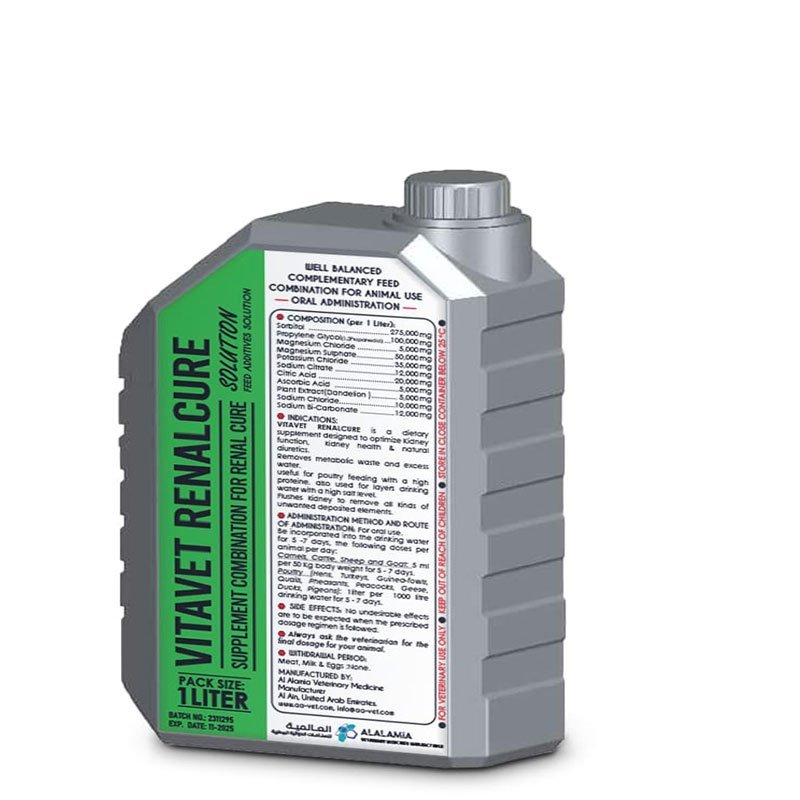 12,000 mg **Indications:** VITAVET RENALCURE is a dietary supplement designed to improve kidney function, kidney health, and natural diuresis.