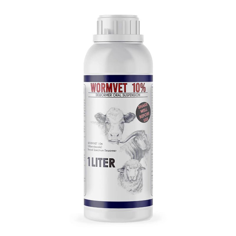 **WORMVET 10%** **(Albendazole)** Broad-Spectrum Antiparasitic 1 Liter **Composition:** Each 1 ml contains: – Albendazole ……………………………….